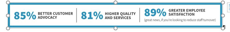 In a study of employees at various companies, EY found that a staggering 87% of respondents believe companies perform better over time when they have a purpose that goes beyond profit. Additionally, EY found a great purpose resulted in: